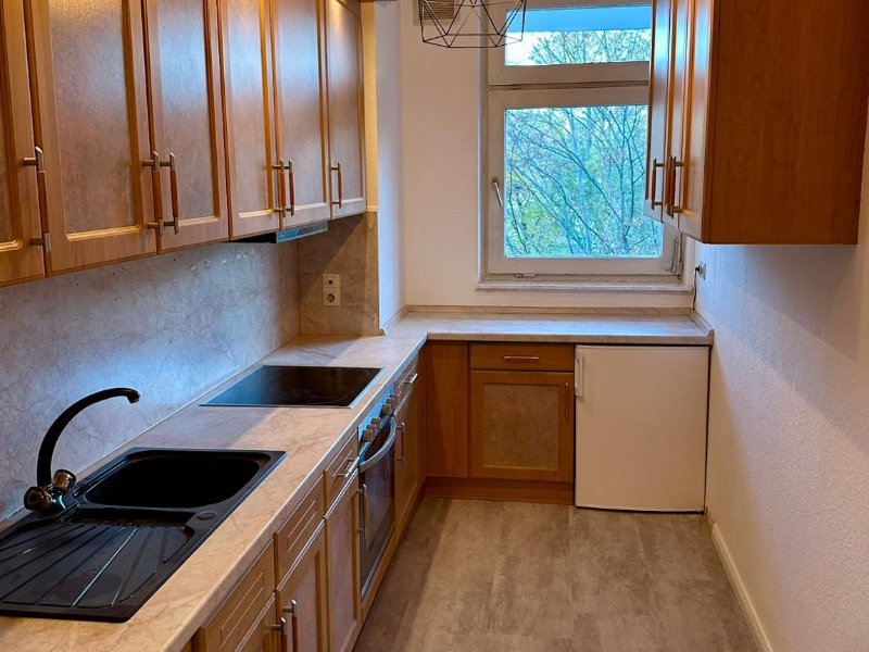 Залог: две месячные аренды. 2. Однокомнатная квартира с балконом в районе Хеллерсдорф. Площадь: 40 м². Цена: 950 € (Warm) + электричество по счётчику.